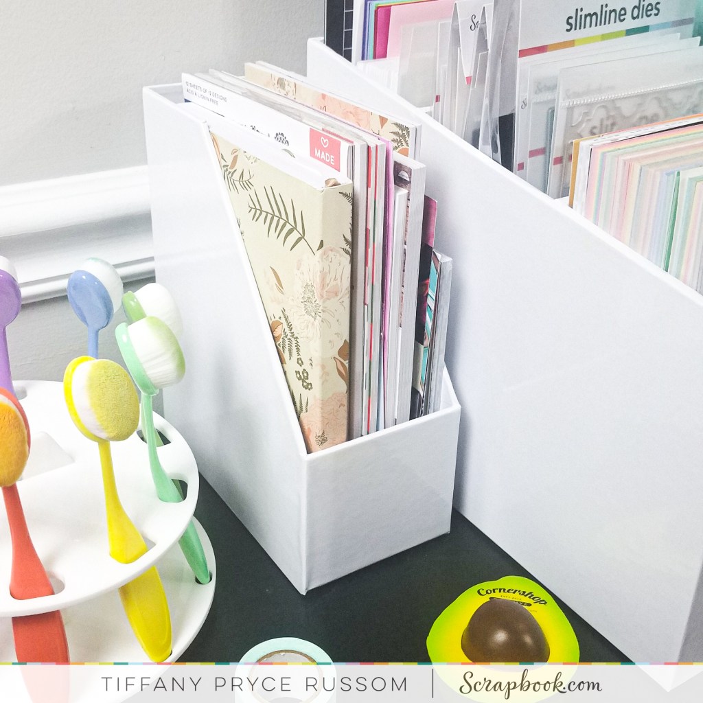 I also have the 6×8 Paper Pad Holder. I don’t have many 6×8 paper pads, but it fits my sketch notebook and planner perfectly. An idea that may work for you is to buy a few and organize all of your 6×6 paper pads. I love that the Craft Room Basics are bright white, very sturdy, and fit in seamlessly on my storage shelf. Whether a cardmaker like me or a scrapbooker/documenter, there is something in the Craft Room Basics line that will help you stay organized. Learn more and see a full list of all the Craft Room Basics on Scrapbook.com!
