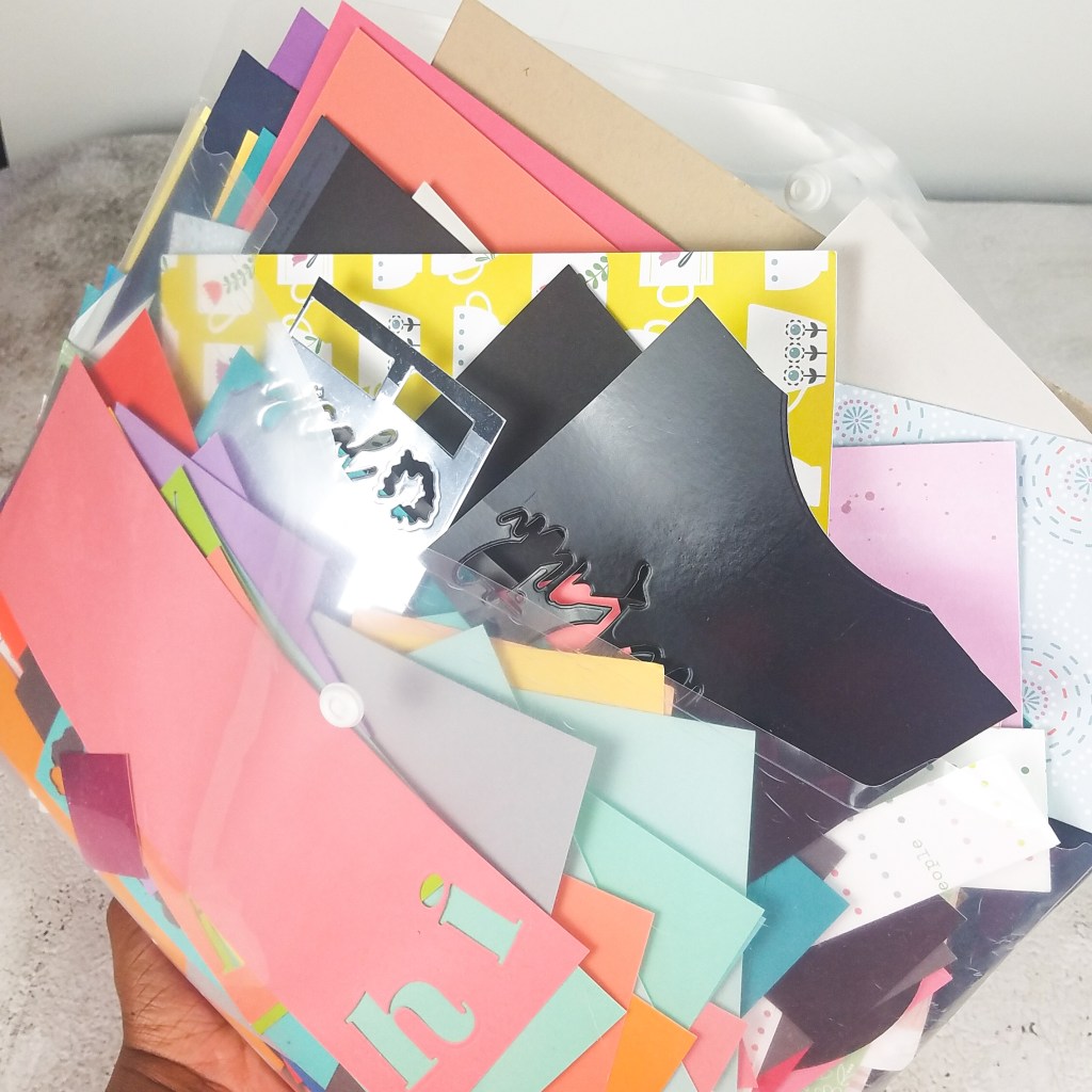 This weekend, I will also try to tackle my scraps envelope. It is…rough to say the least lol. My plan is to organize the scraps by color, I’m thinking warms (red, orange, yellow, pink) and cools (blue, green, purple). I thought about one envelope per color, but that sounded so extra. Watch my IG for the before (pictured below) and after pic at some point.