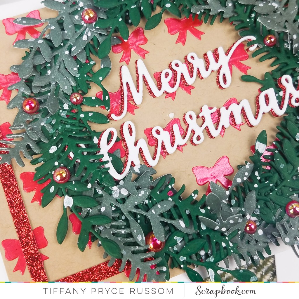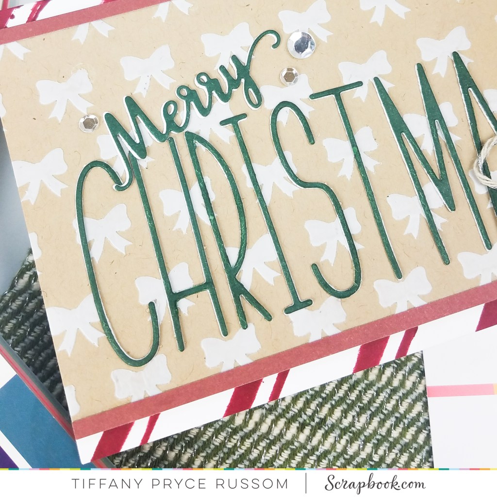 Products: Mini Merry Christmas die (no longer available); Little Bow stencil; Christmas paper pad; Put A Bow On It Dies; Pops of color, Cherry Pie