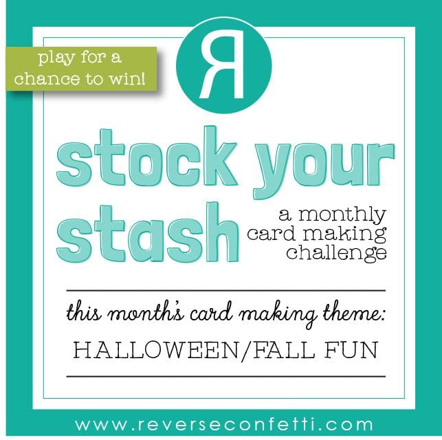 It’s time for a new Stock Your Stash challenge! And this month, Reverse Confetti is celebrating all things Halloween and Fall. What a fun theme to work with! There is a new Stock Your Stash challenge posted on the Reverse Confetti blog on the 1st of each month. Enter your design between the 1 to 29th of the month on the Reverse Confetti blog. All you have to do is create a card or some other craft with your RC stash! You can enter as many times as you wish. At the end of the month a random winner is chose to win a $20 gift certificate to the Reverse Confetti store. Don’t forget to tag RC and use #SYSChallenge on social media!