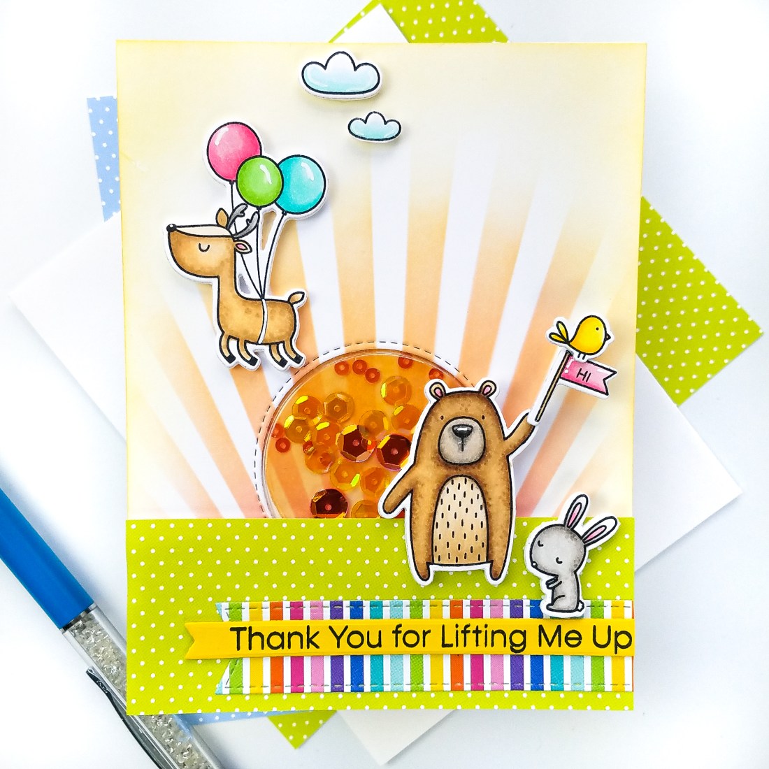 I had so much fun interpreting this sketch into my card. I love the Favorite Friends stamp set; it’s so cute!