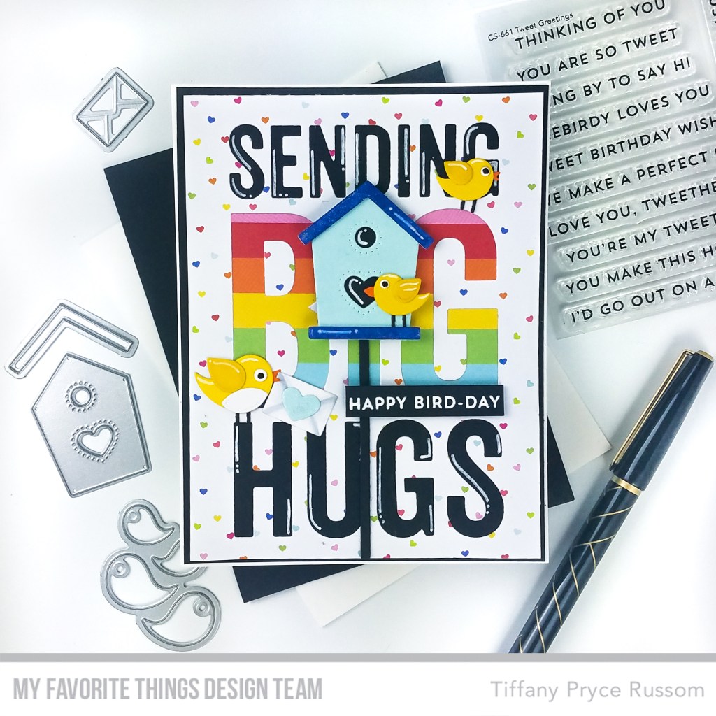 Hey friends! It’s time for a new MFT card kit release! Today is Countdown Day 1, and I’m sharing a card made mostly of die cuts. This month’s kit is called Tweet Greetings, and it is another adorable kit for cards of all occasions. It features cute birds and bird accessories like a ring to perch a bird on and adorable birdhouses. For my card today, I combined the new products with an older product for a fun, birthday card.