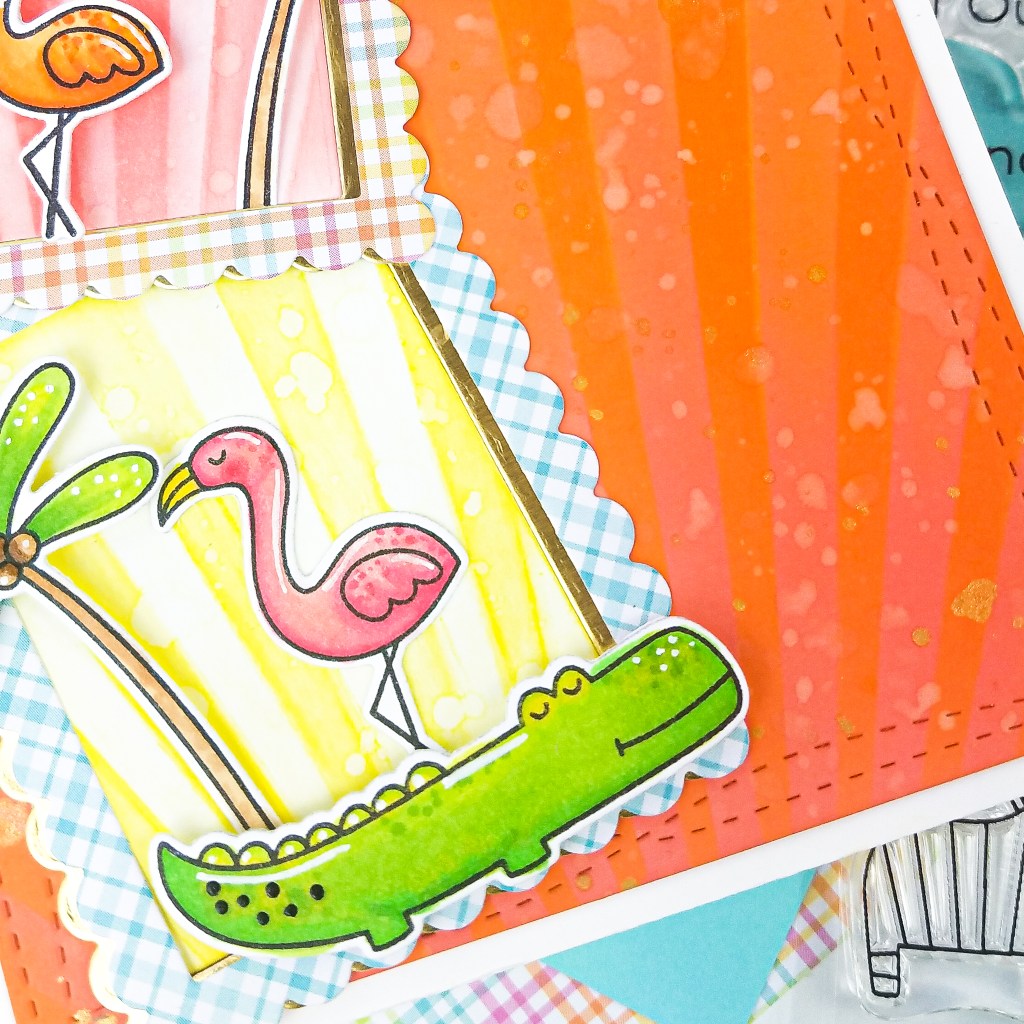 Welcome back to my blog and welcome back to another Countdown day until the new MFT release! It is day 2 and I am sharing a card I made using the Paradise Pals set mixed with some other previously released MFT products. Another really cute stamp set for your collection!