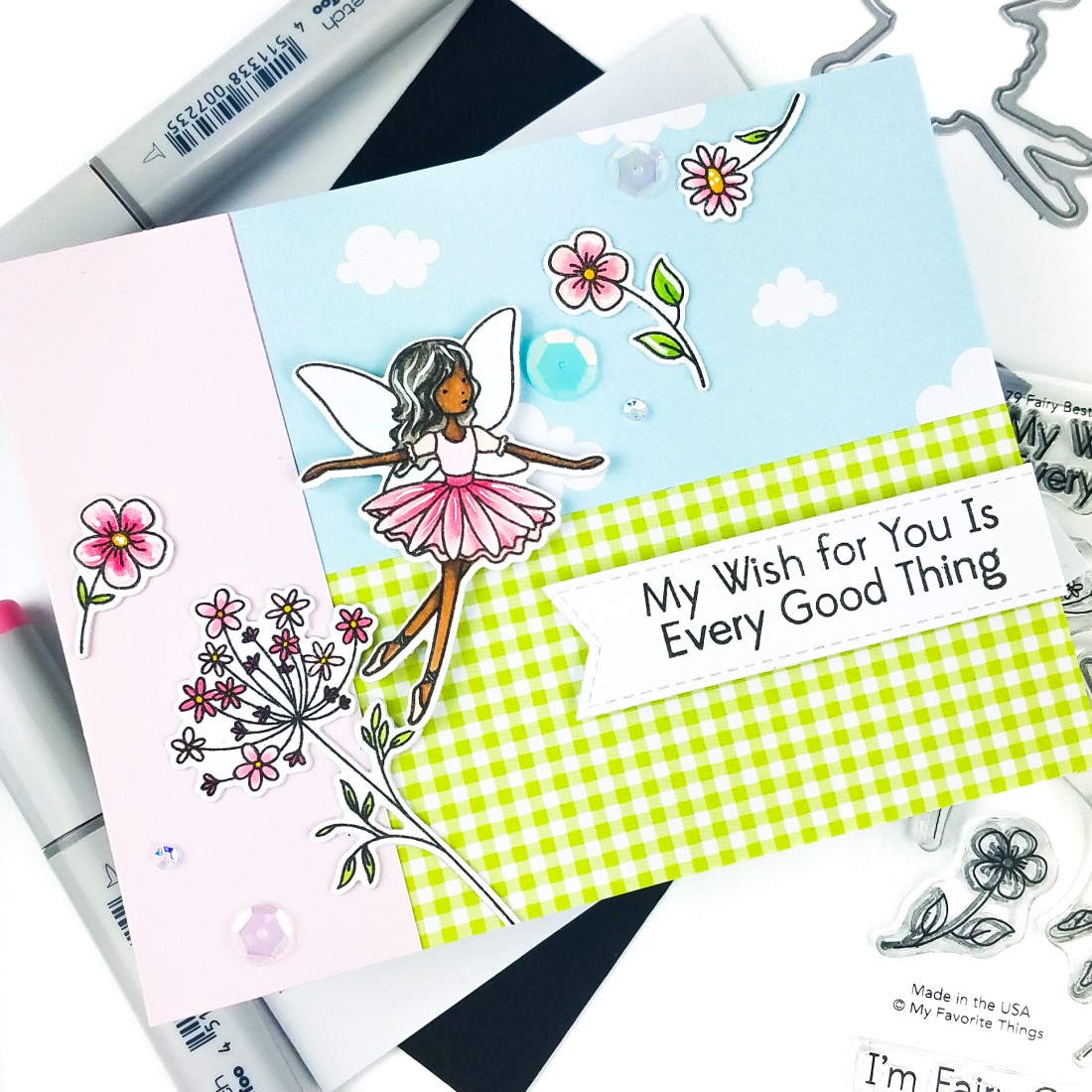 - Stamp images and copic color the images from Fairy Best Friend. Die cut with the coordinating die-namics.