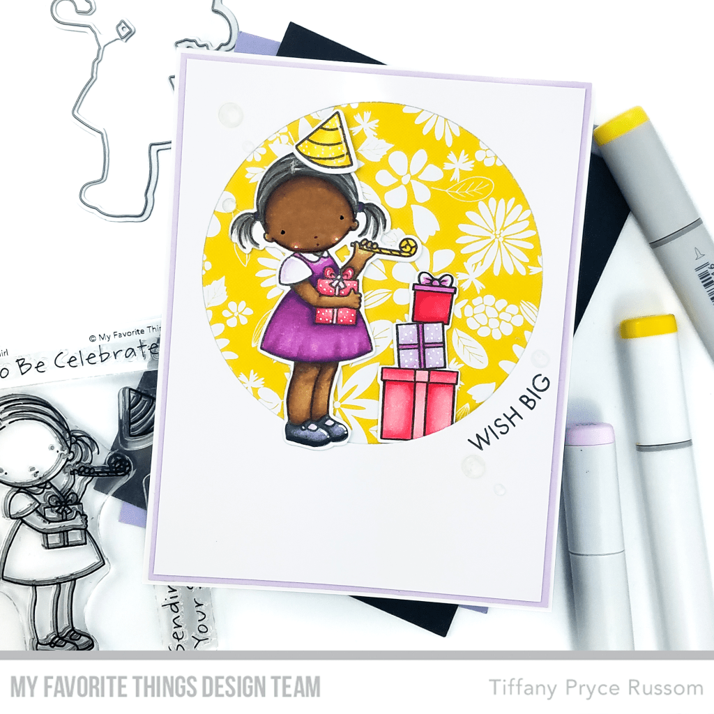 - Stamp and copic color the cute little girl and hat from PI Happy Birthday to the Sweetest Girl. Die cut with the coordinating die-namics.