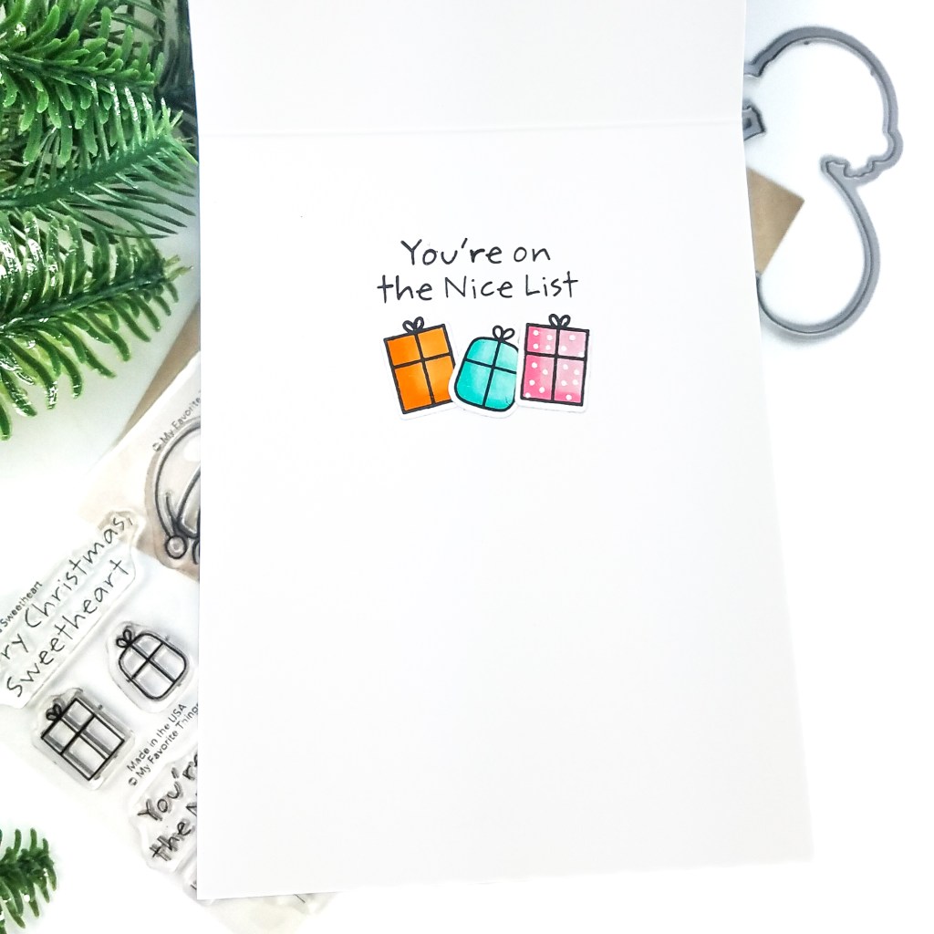 - Inside the card, stamp another sentiment and adhere the extra gifts.