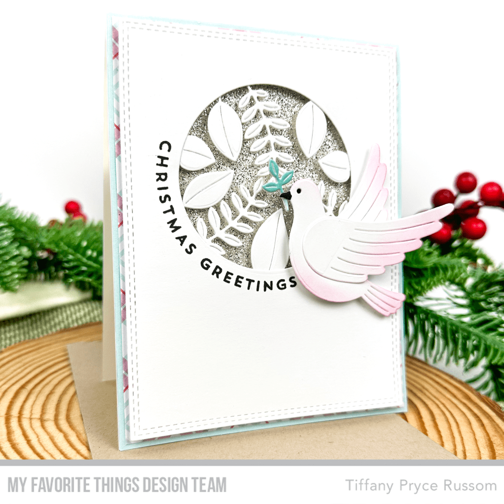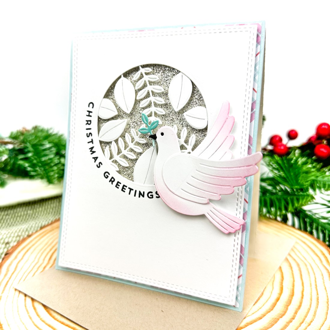 As you know, Black Friday is coming up and there are a TON of great deals out there. I wanted to highlight MFT’s sale. There is 40% off the shop right now! That’s the very best deal from a craft company I’ve seen so far. For a little inspiration, I made another card using a couple of my favorite products, the Peaceful Dove and Peaceful Greenery Die-namics.