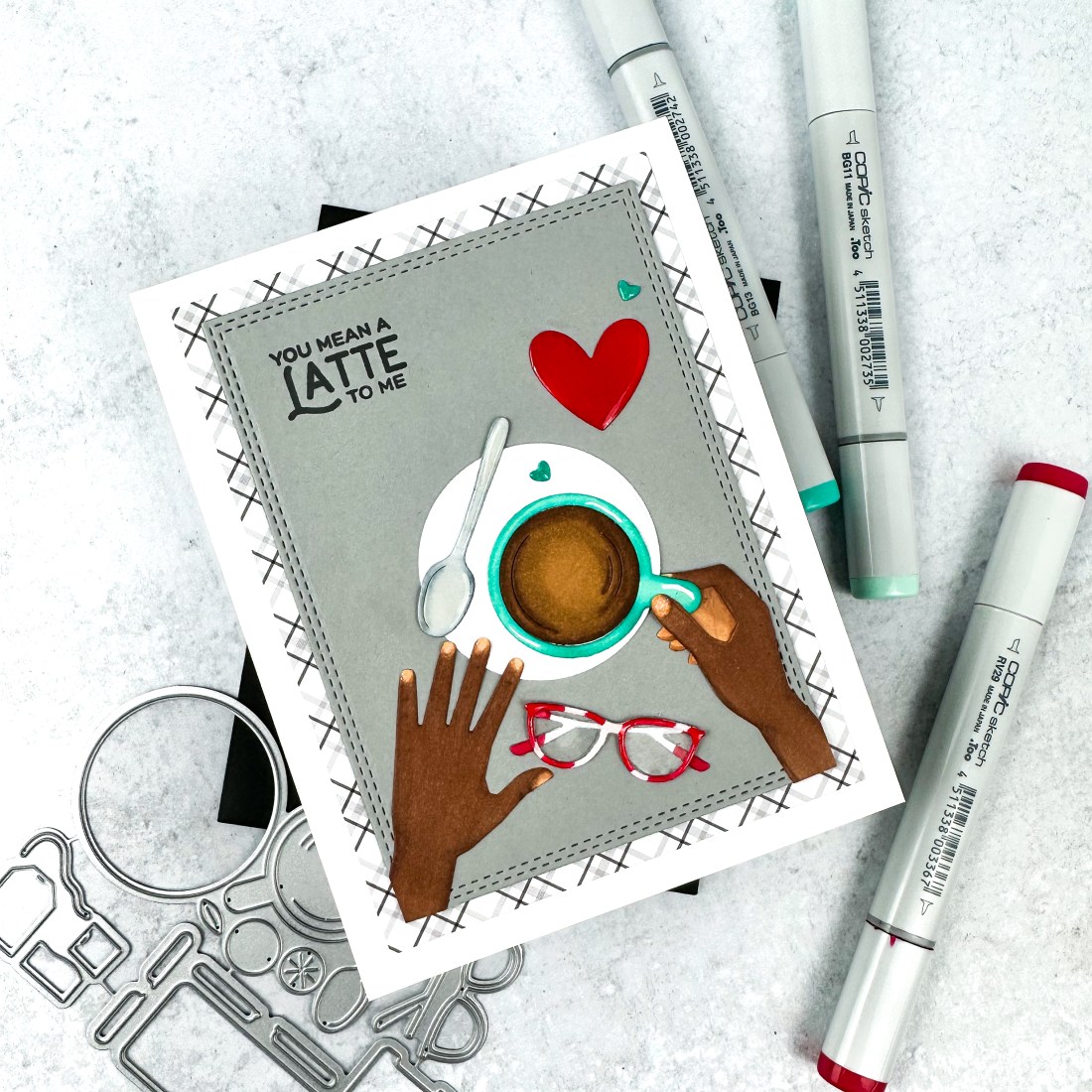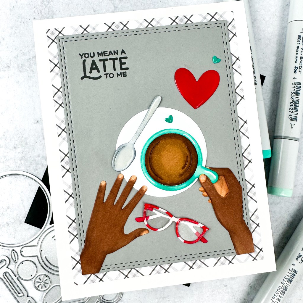 For today’s sample, I created a valentine’s card for my husband. I love coffee and he loves chai lattes so the sentiment works well for us.