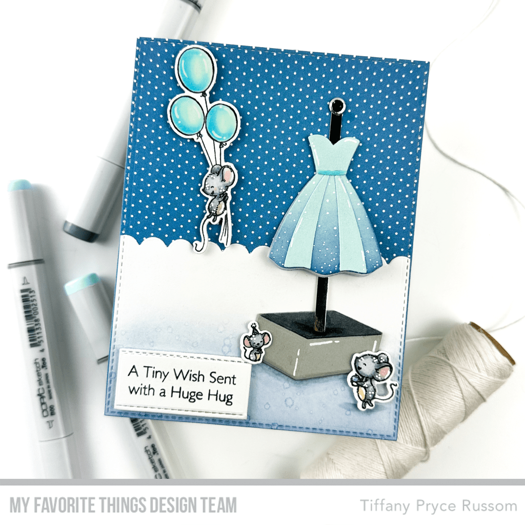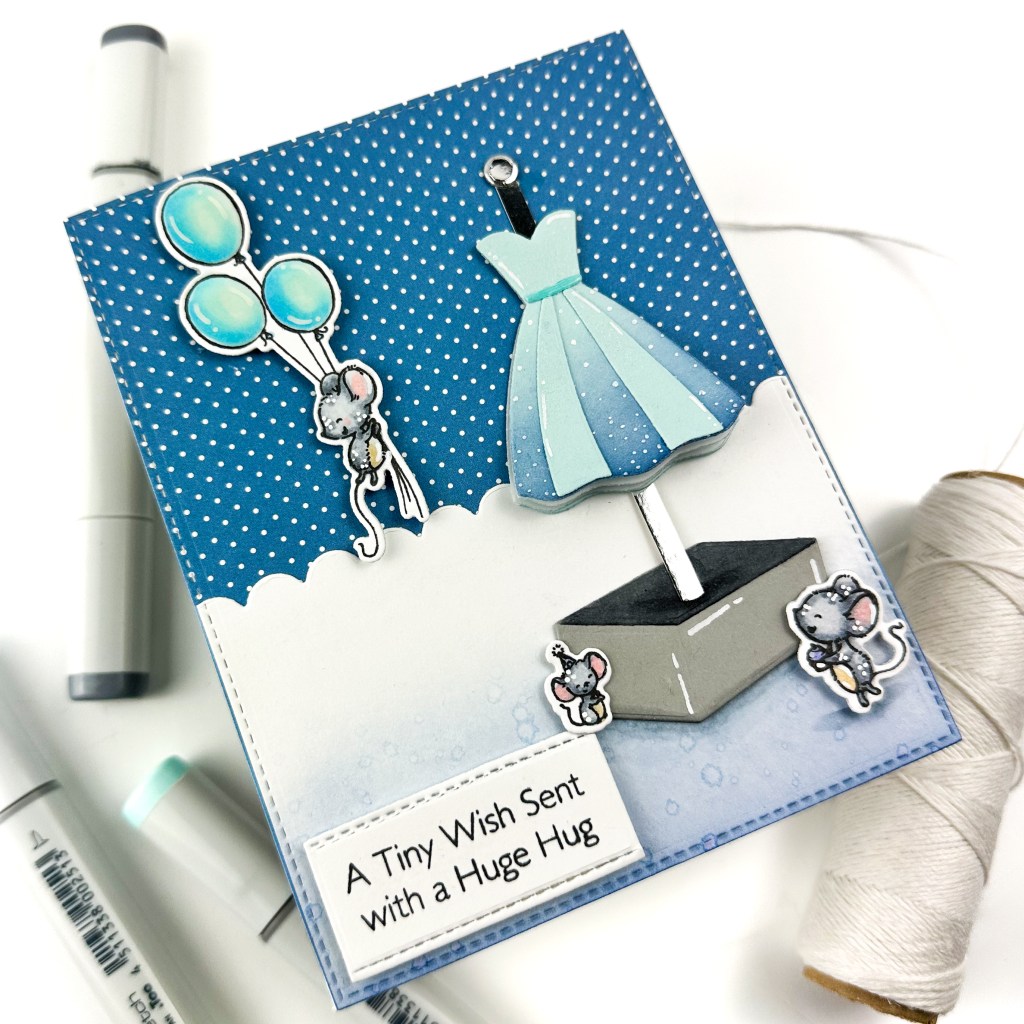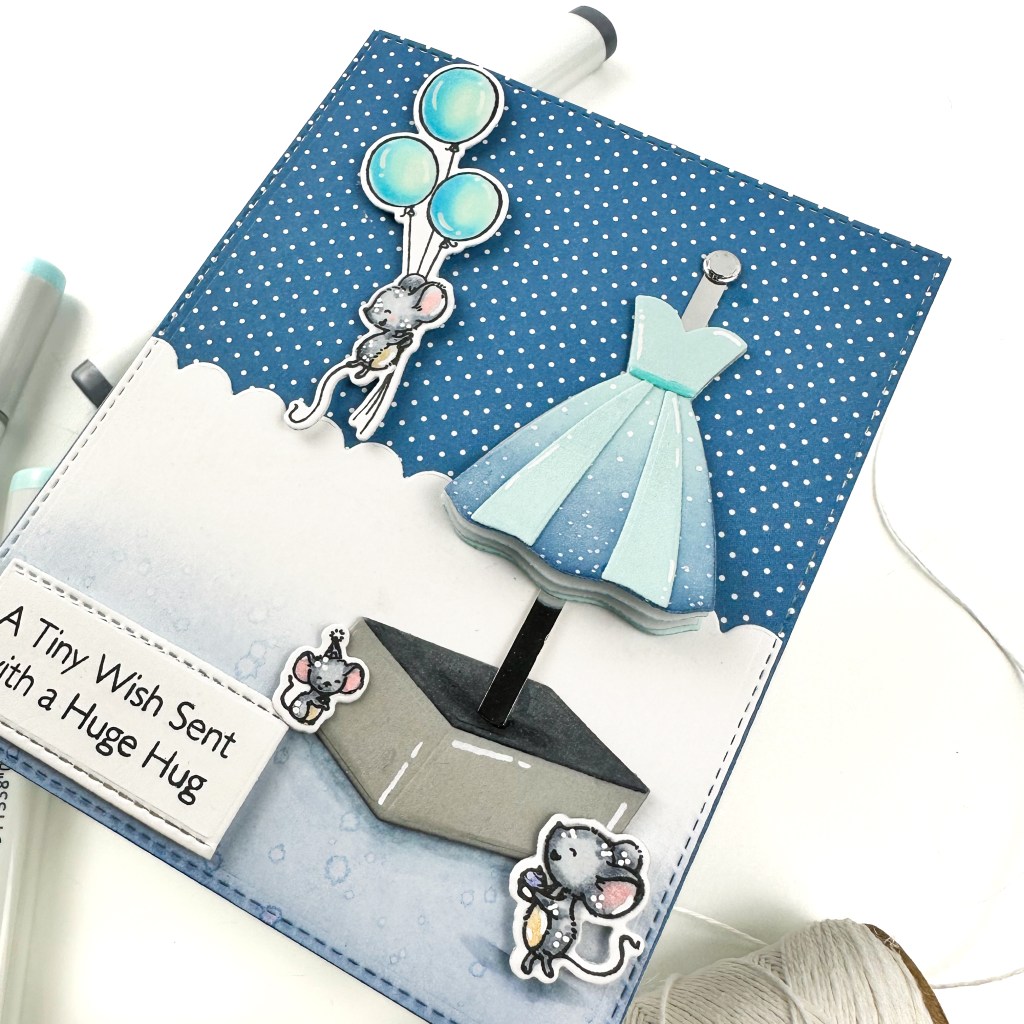 - Stamp and copic color the mice and balloons from SY Unforgettable Birthday. Die cut with the coordinating die-namics.