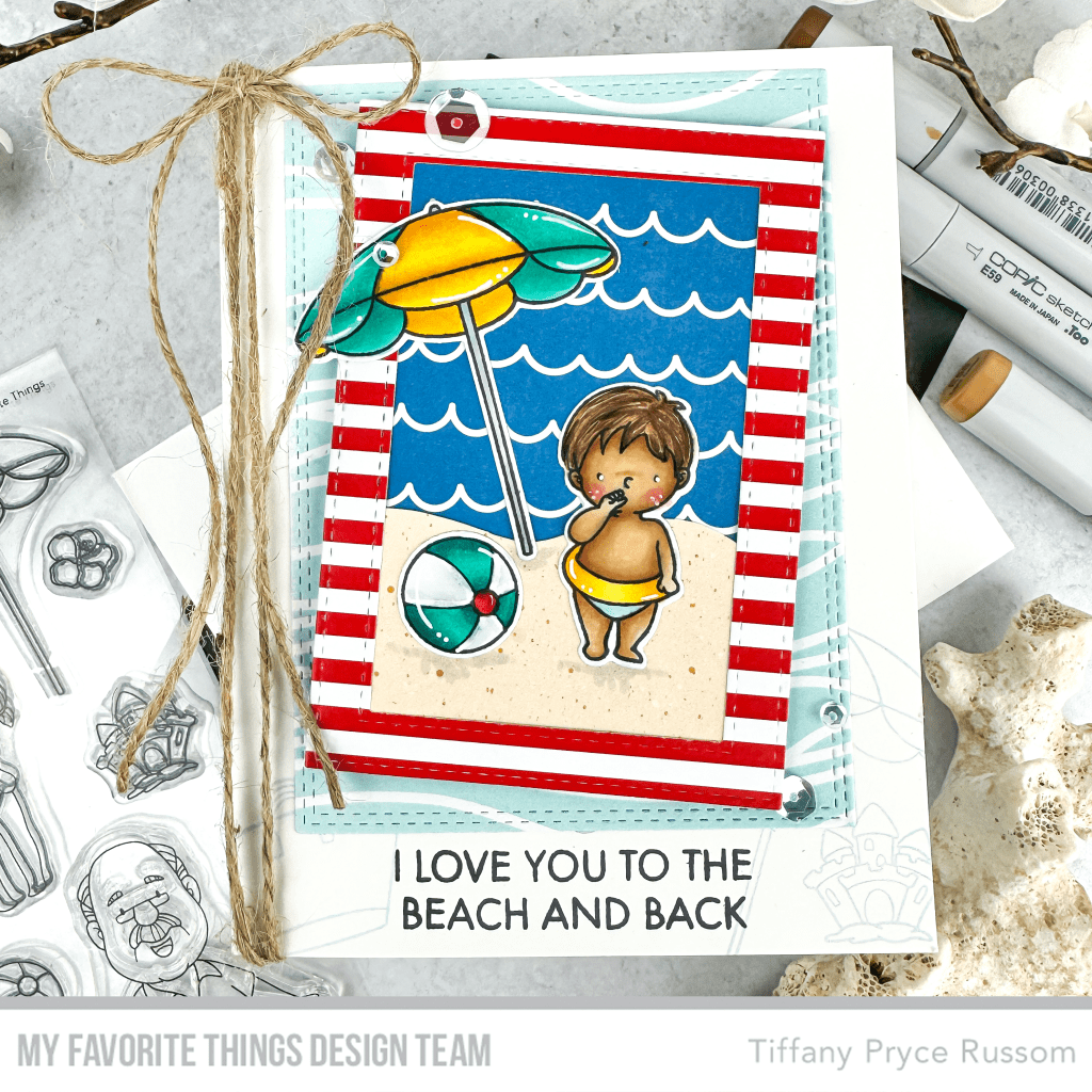 - Die cut frames using the Stitched Rectangle Frames Die-namics and the Sand, Surf, & Sky Paper Pad.