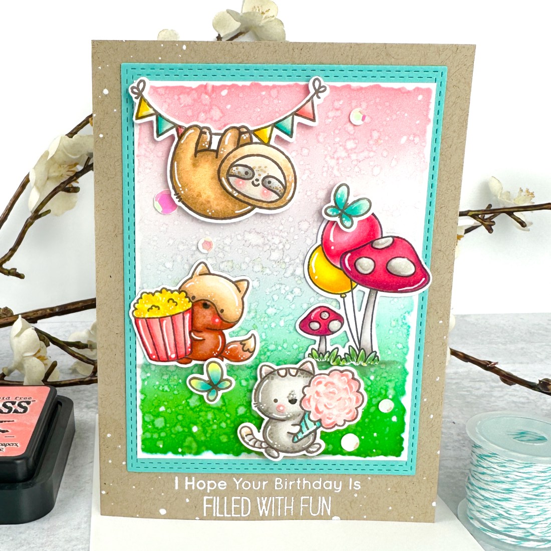 I wanted to share a card using elements from each set to show how you can use them together to build a cute scene. Of course, one stamp set alone is enough to build a scene, but I like using them all together for an explosion of cuteness. 🙂