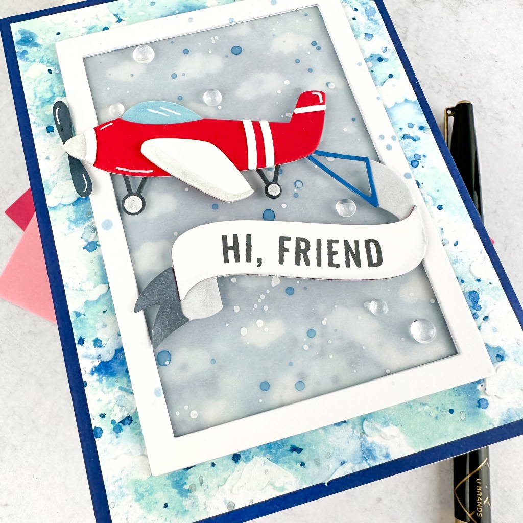 For today’s spotlight, I am featuring the new Plane and Simple Die-namics. It is such a fun die set that could be used for anyone. I made a mixed media background to accompany this adorable plane.