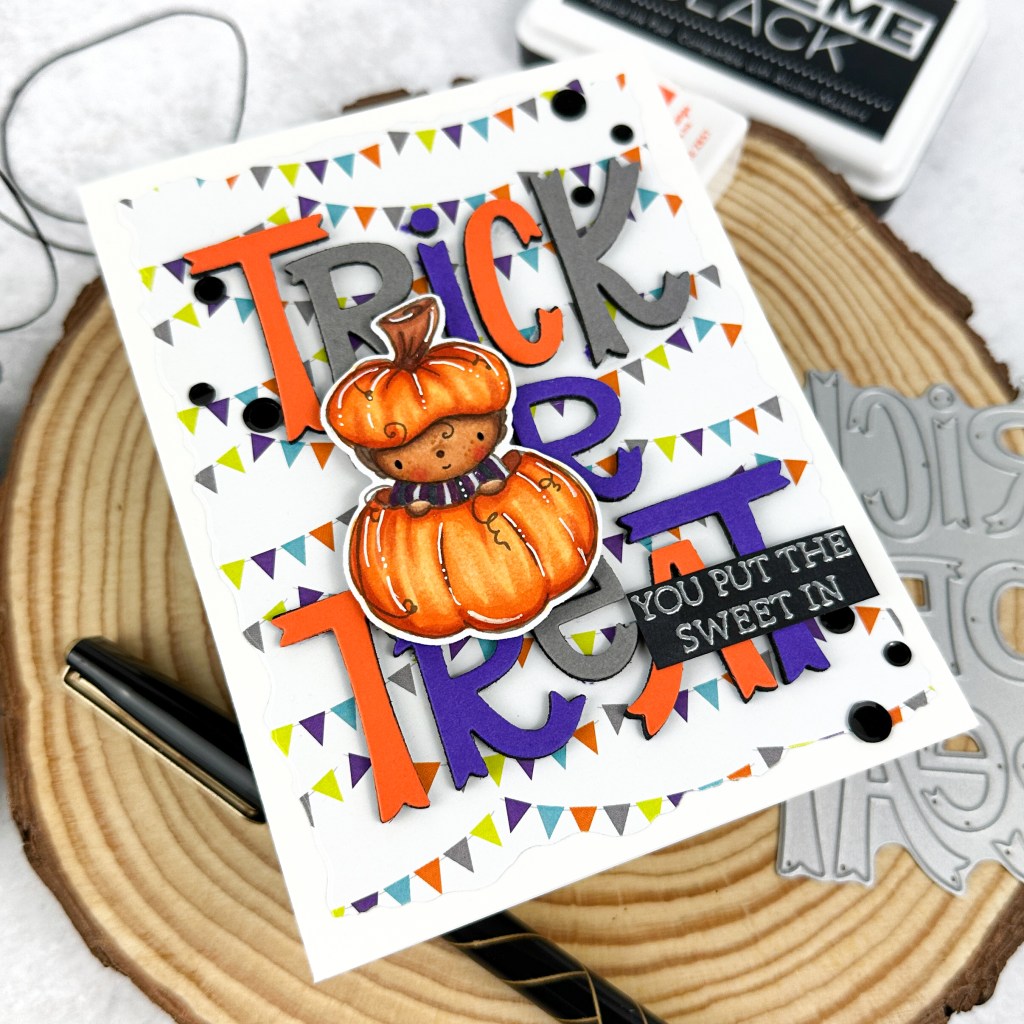 - Stamp and copic color an image from RAM Sweetest Trick or Treaters. Die cut with the coordinating die-namics.