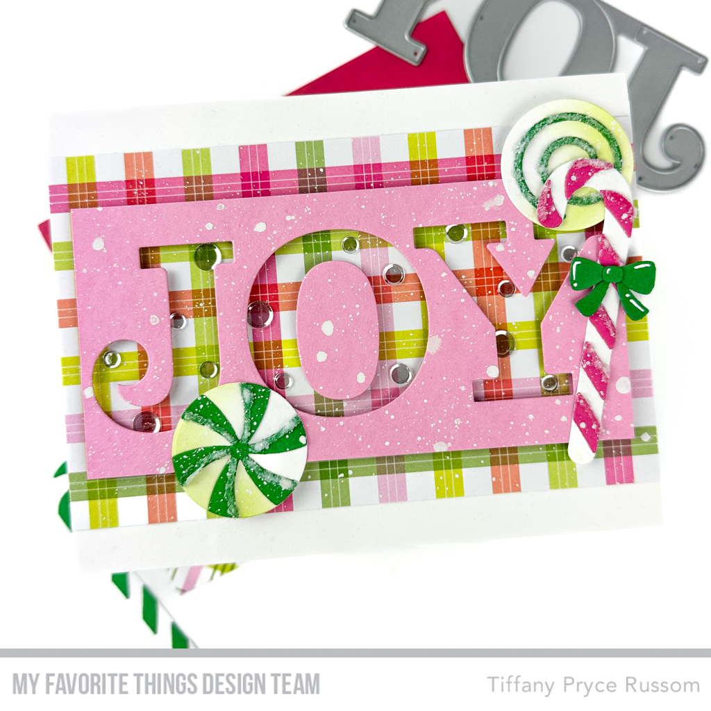 2. Behind the die cut word, add a panel of patterned paper from Holiday Plaid Paper Pad.