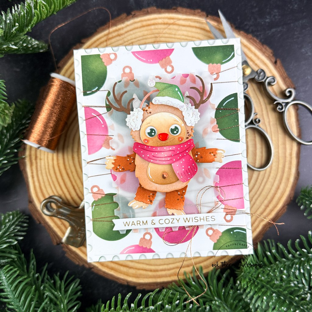 Today, I’m sharing a sweet card using the new Rocky the Dancin’ Yeti Dies from Spellbinders. The yeti joins the family of all the other adorable dancing critters with interactive legs that rock back and forth.