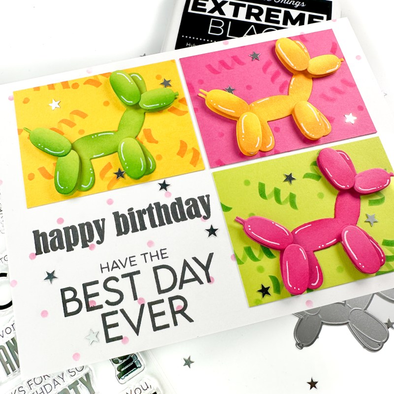 The brand new MFT Stamps card kit, Birthday Vibes, is live in the shop! Today, I’m sharing another clean and simple card with you mimicking the pop art style.