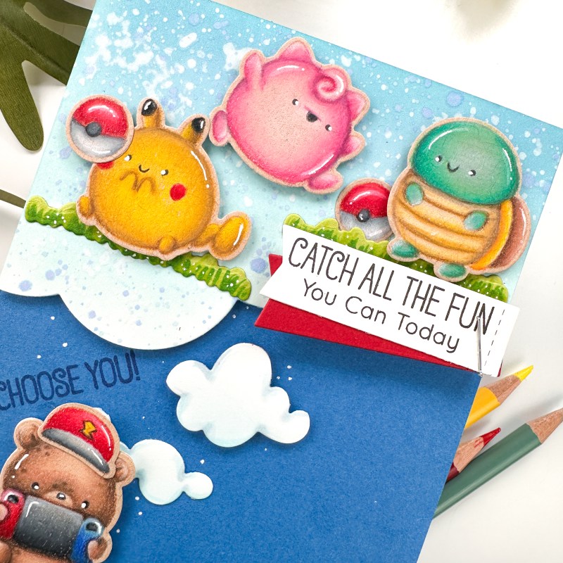 Sharing another card sample to inspire you to check out the new MFT Stamps release dropping tomorrow at 10am ET. This card features another new Jenoblade stamp set called JB Super Rad Skaters.