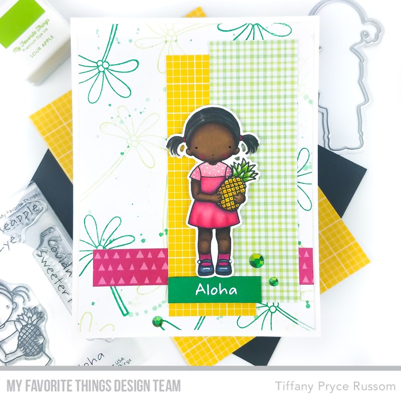 The new MFT Stamps March release is live! For today’s inspiration, I decided to create a card with the new Pure Innocence Pineapple of My Eye stamp set paired with one of my favorite, tried and true techniques of creating my own patterned paper.