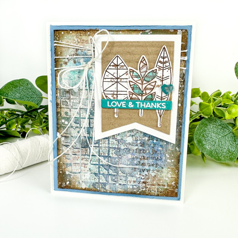 MFT has scoured its vault and chosen some fan favorites to make a reappearance today! The release is available in the shop right now so go check it out, if interested. I used the re-released Geometric Greenery Stamp & Die combo to create a grungy mixed media card. I think this is perfect for a masculine design or any mixed media fan.