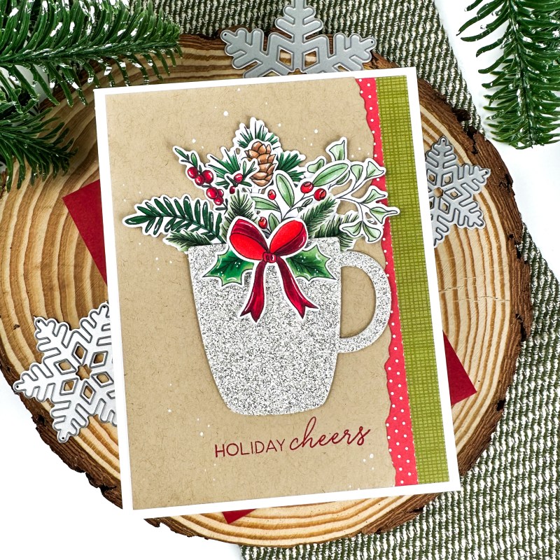 For today’s sample for countdown day 2, I’m combining a little new with a little old for another holiday design! I used the brand new Winter Greenery, Coffee Mug, and Torn Paper Edges.