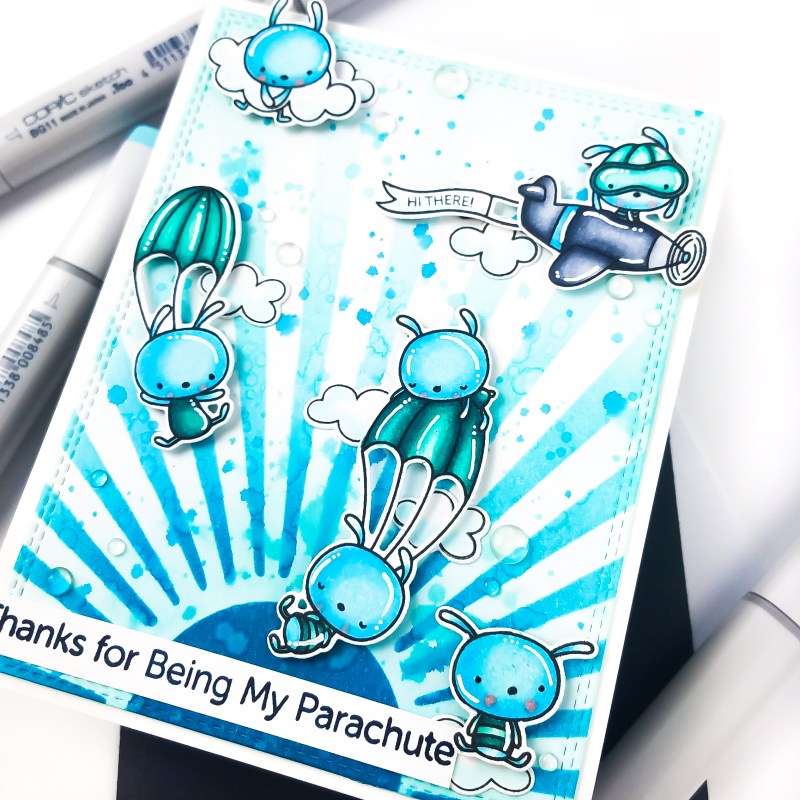 One more sleep until the new release is live! Today, I’m sharing inspiration using the Parachute Pals stamp set and coordinating die-namics. I haven’t tried to make a monochromatic card for awhile, so I thought I would today.