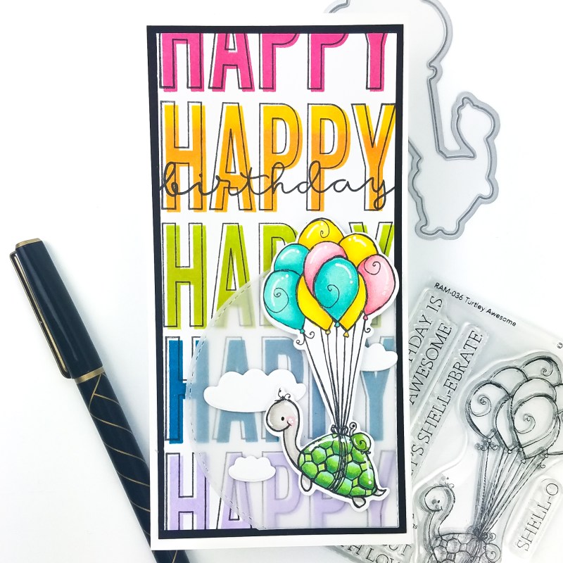 Welcome to countdown day 2! For today’s card, I went back to a technique I like. I love repeat stamping, so I thought it would make a wonderful background to this adorable, new turtle stamp.