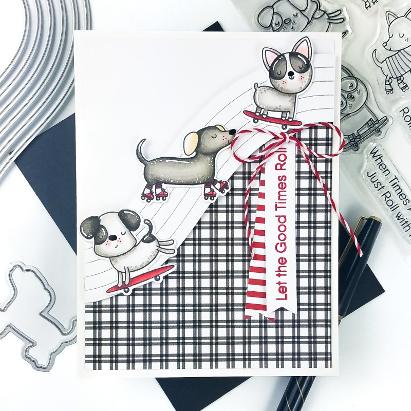 One more day until the July release! I’ve made a few colorful cards the past few days, so I wanted to try one that was predominately black and white. I really like this layout and think I’ll do it again with different stamps and dies in the future.
