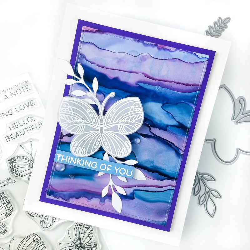 MFT has a special release in the shop right now to bring awareness to breast cancer. This release honors those who are fighting, who have fought, and who want to support the continuing research and education of breast cancer. I made a simple, but meaningful card using alcohol ink.