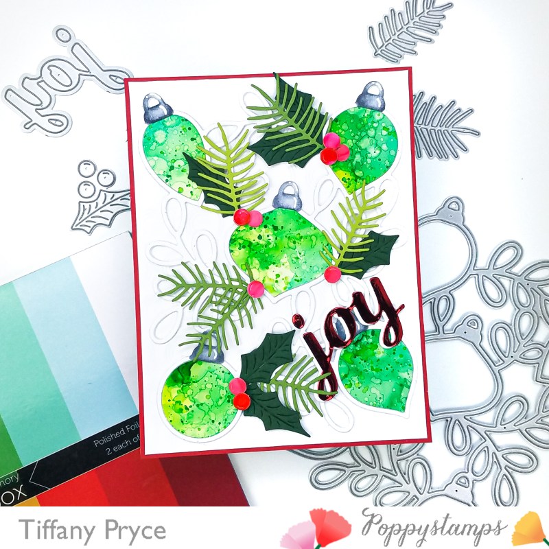 Today is an exciting day because Poppystamps is hosting an IG hop to showcase its brand new release – woo! The release is so gorgeous and perfect for all your holiday/winter cardmaking needs. For my card, I featured a mash up of products from the whole Birch Press Designs family, including the new Poppystamps Ornament Background die.